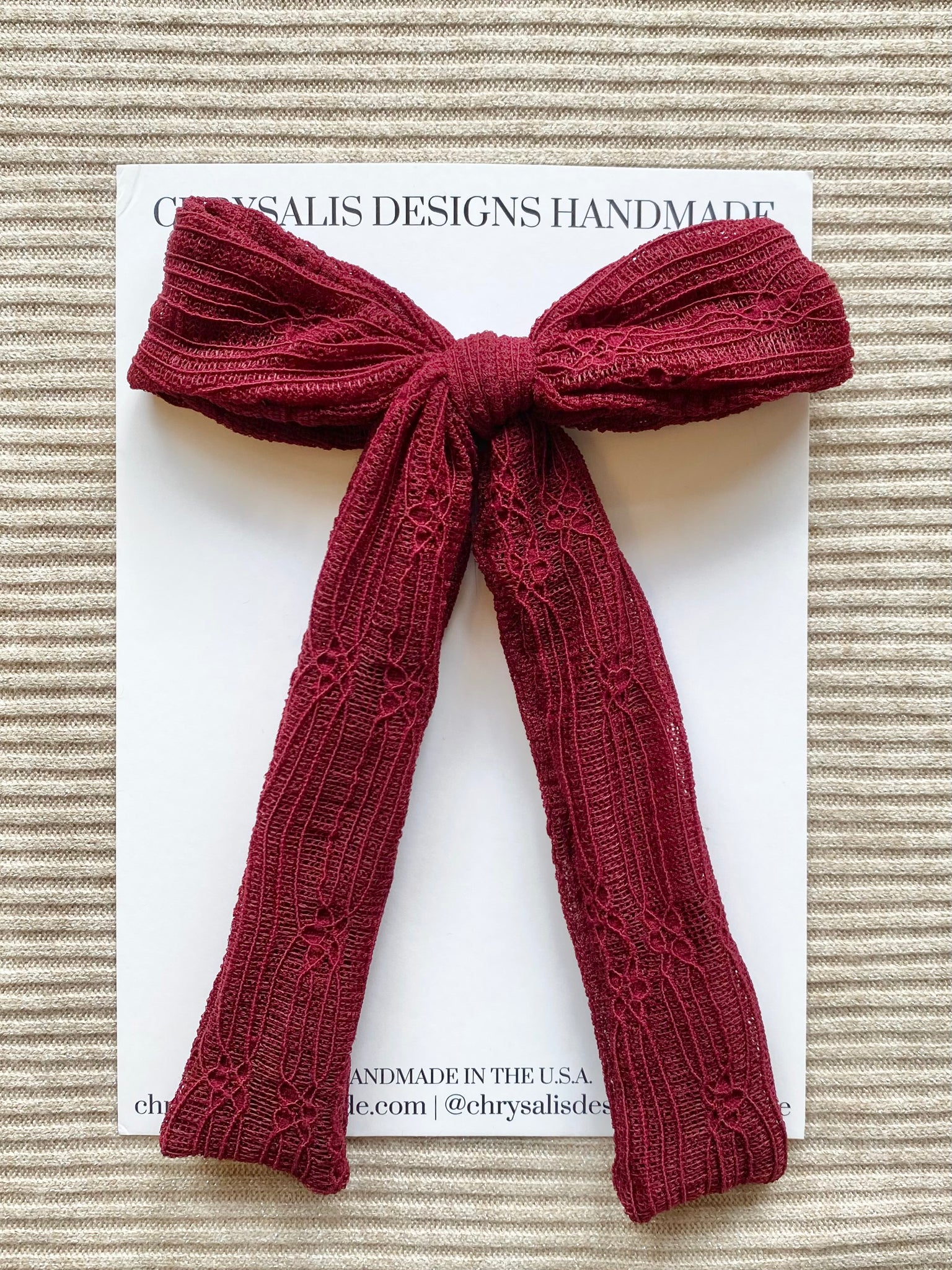 Burgundy lace long tail classic bow